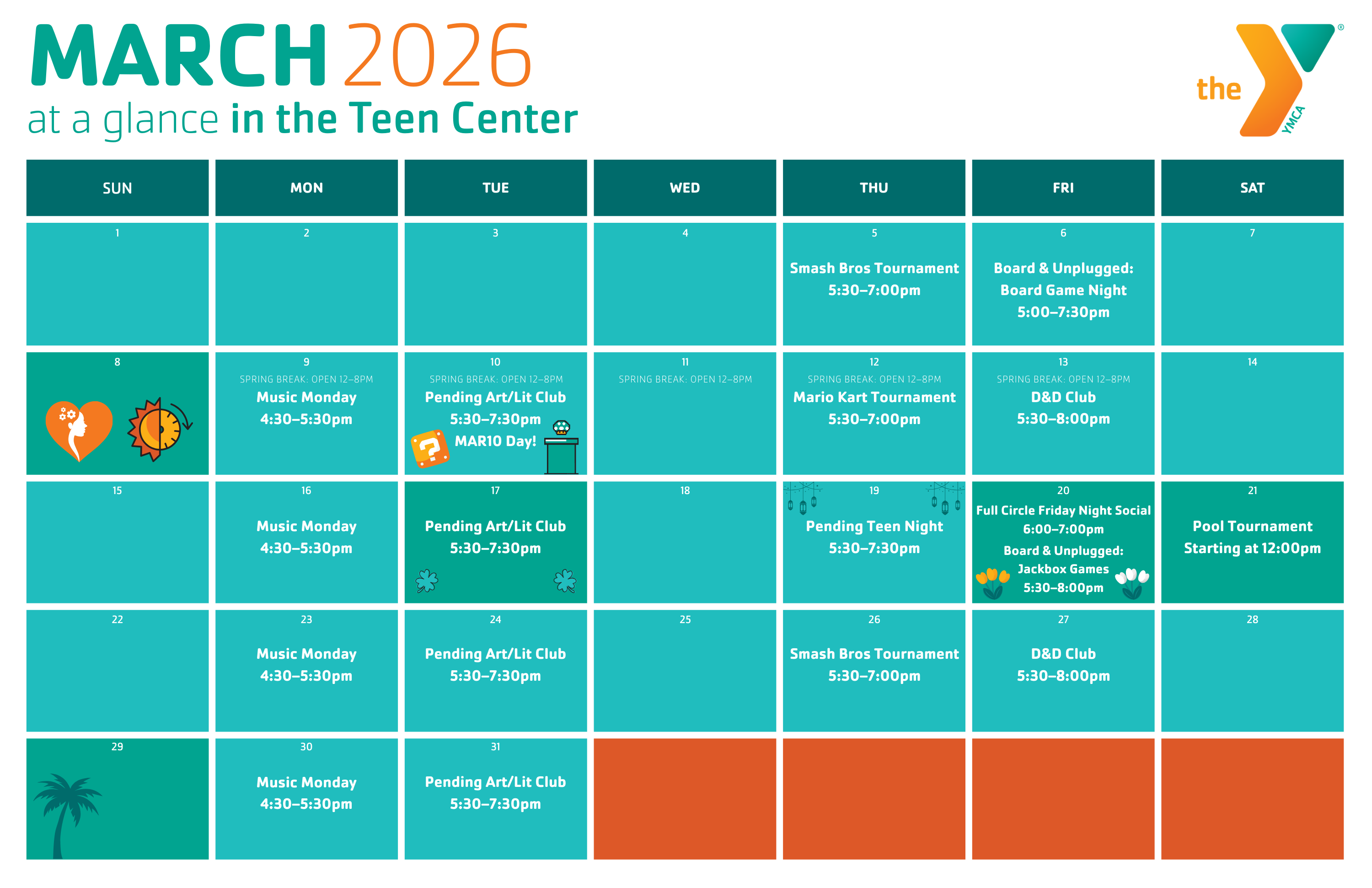 Contact Chris Shaw, Teen Director, at cshaw@ymcamidtn.org with any questions. See you at the Teen Center!