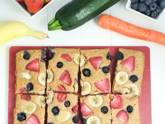 This easy and eye-catching pancake recipe includes zucchini, carrots, fruit, and whole wheat. You can swap out different berries, veggies, and even the pancake batter to really make it your own. It's the sheet pan that does the trick—making one, hot and healthy pancake for everyone to divvy up and enjoy together instead of spending time cooking pancakes individually.