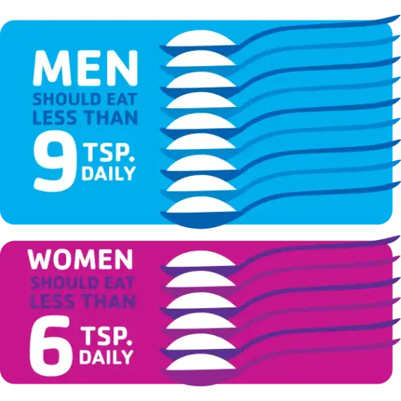 But how much added sugar should we limit ourselves to? The recommendation for women is to eat less than 6 teaspoons daily. For men, it's less than 9 teaspoons.