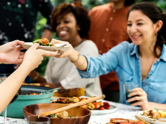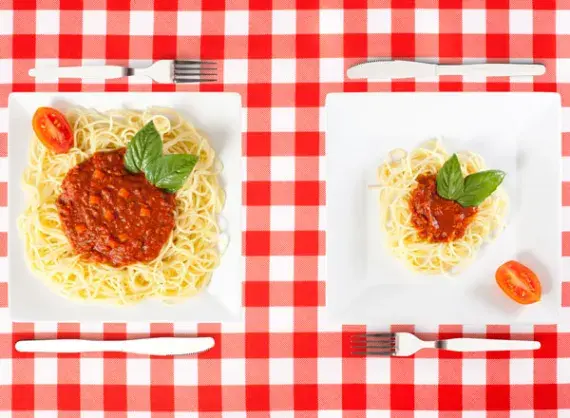 There are several ways to tackle this incredibly common problem. You can ask for a lunch-sized portion, split your meal with a friend, or save part of it for leftovers. Try even boxing up half of the dish right when you're served to avoid the temptation of overeating.