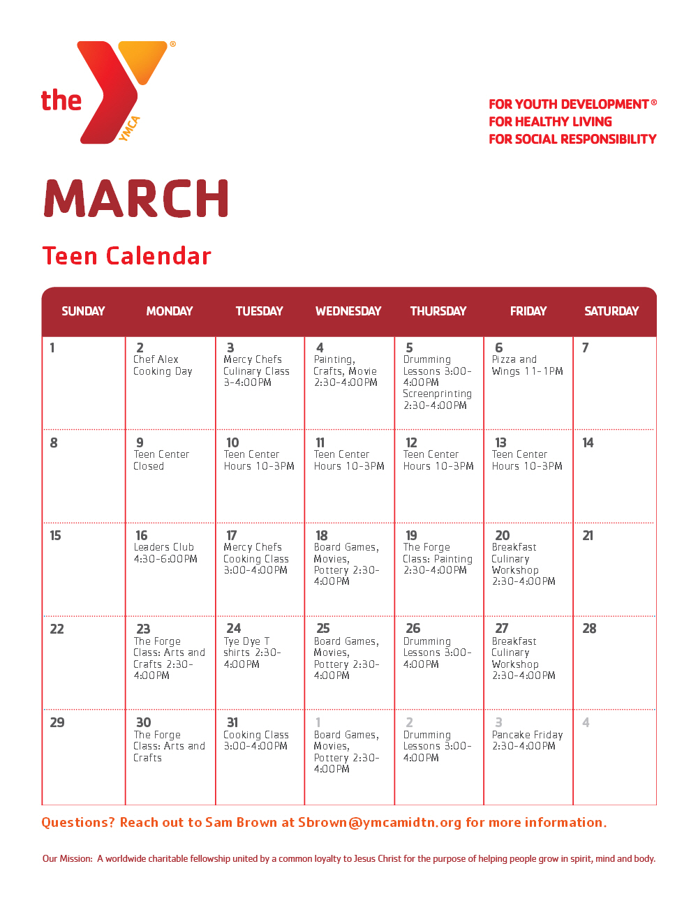 QUESTIONS? Contact Sam Brown at sbrown@ymcamidtn.org